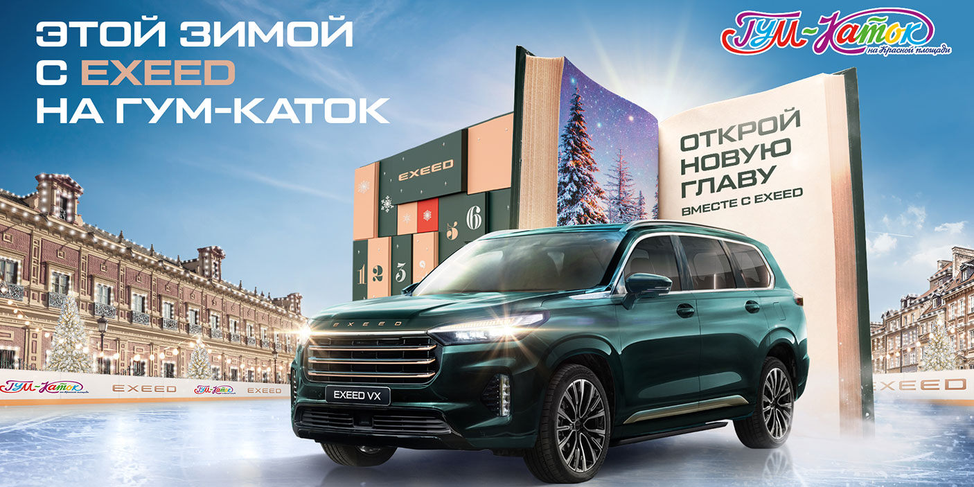 Кроме того, на центральной аллее ГУМа можно будет ближе познакомиться с автомобилями EXEED: они готовы поддержать вас в любых зимних активностях. Простор салона позволит перевезти не только коньки, но и санки, и лыжи, и экипировку, а благодаря полному зимнему пакету в салоне можно быстро согреться даже после самой динамичной игры в снежки.