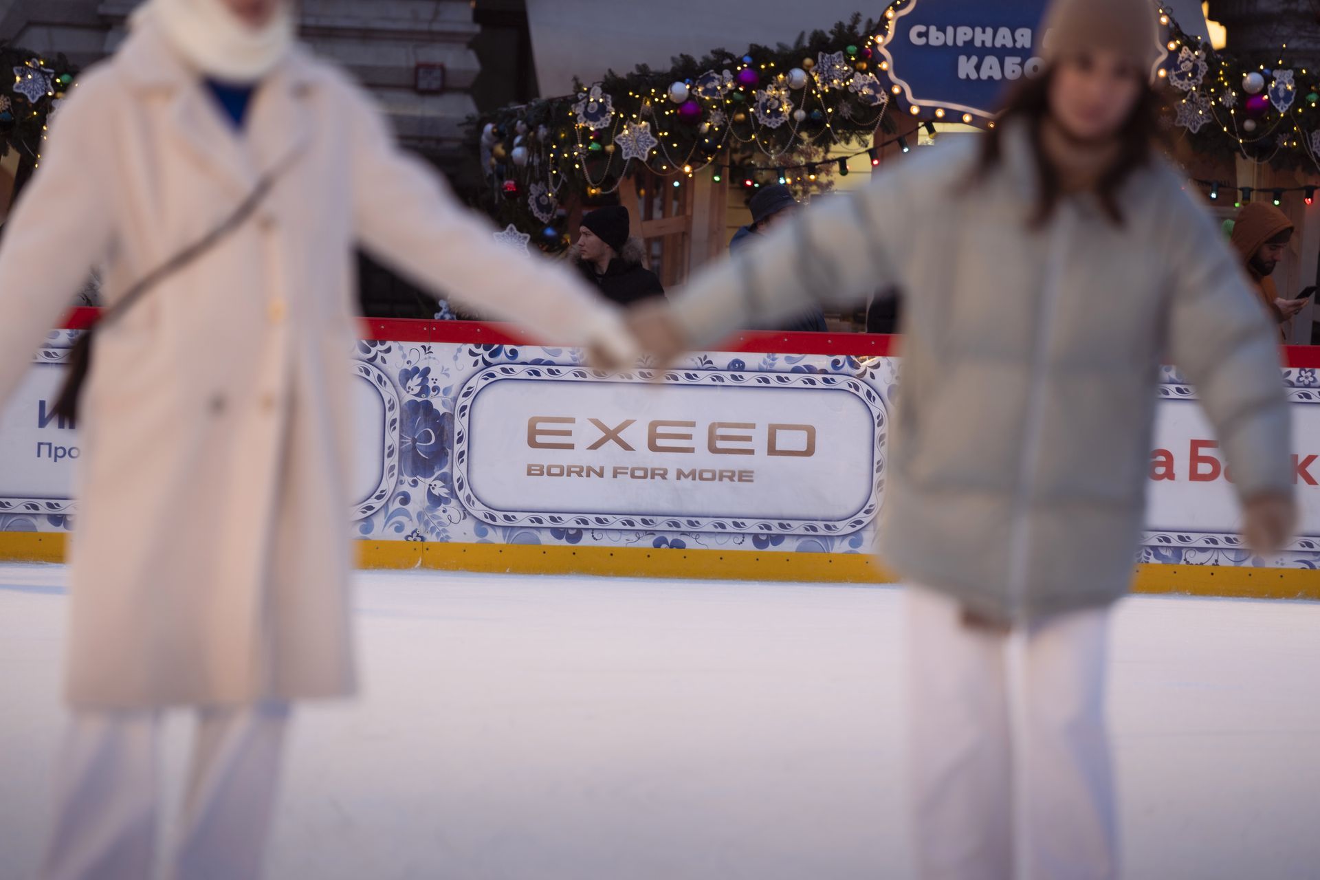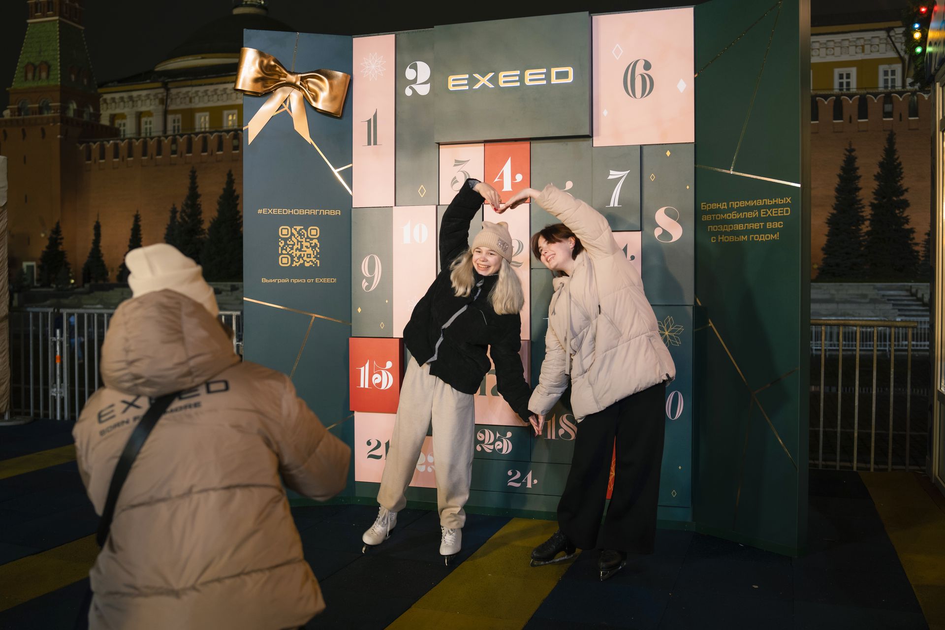 Владельцев EXEED тоже ждет приятная привилегия: показав документы на автомобиль на уличной фотозоне бренда, можно бесплатно получить коньки в прокате – и наслаждаться катанием на главной площади страны!