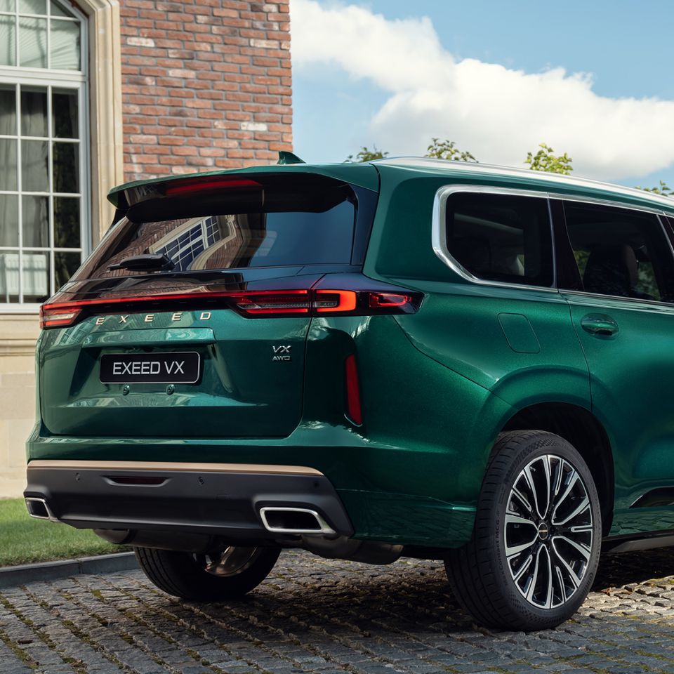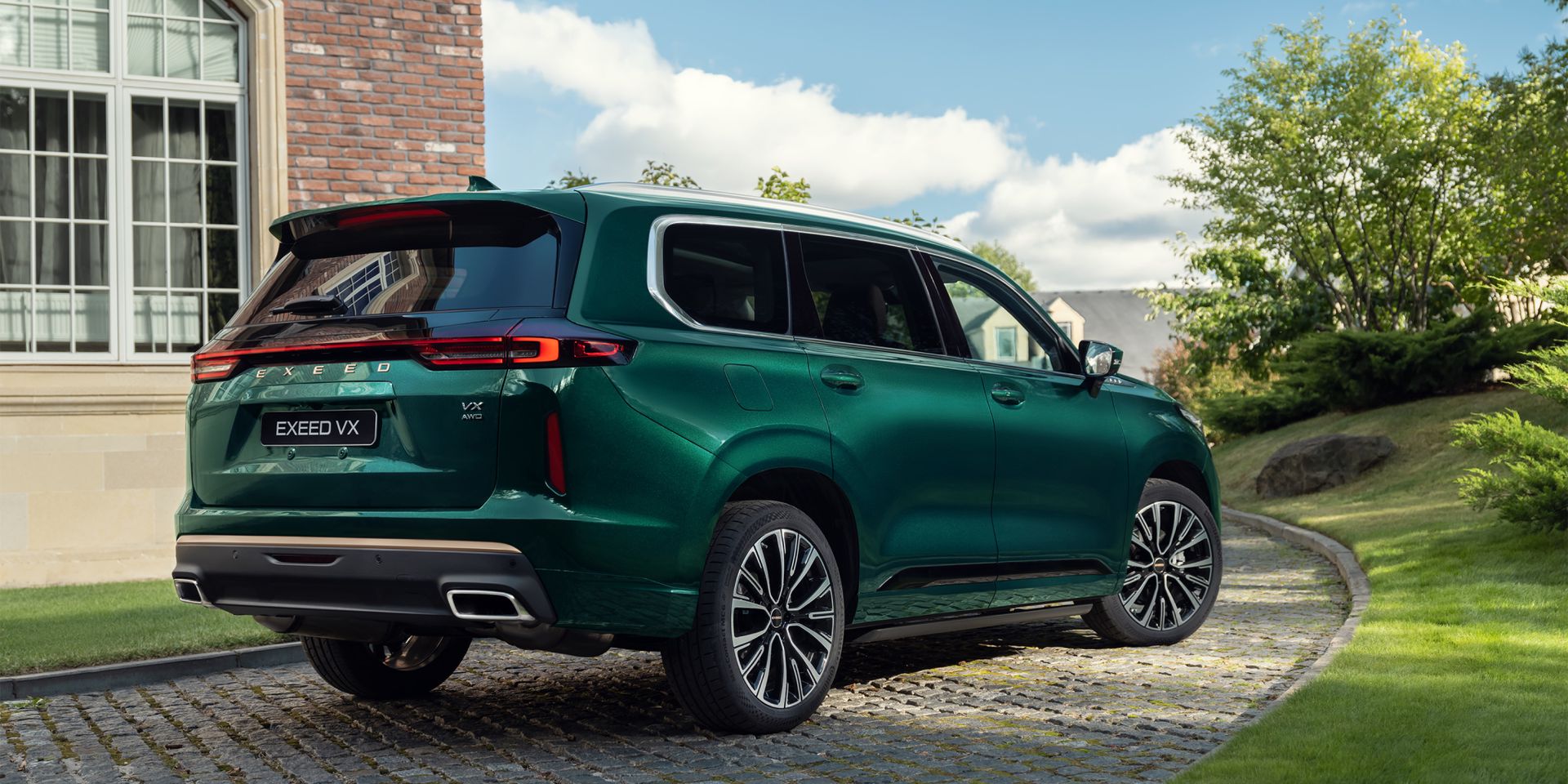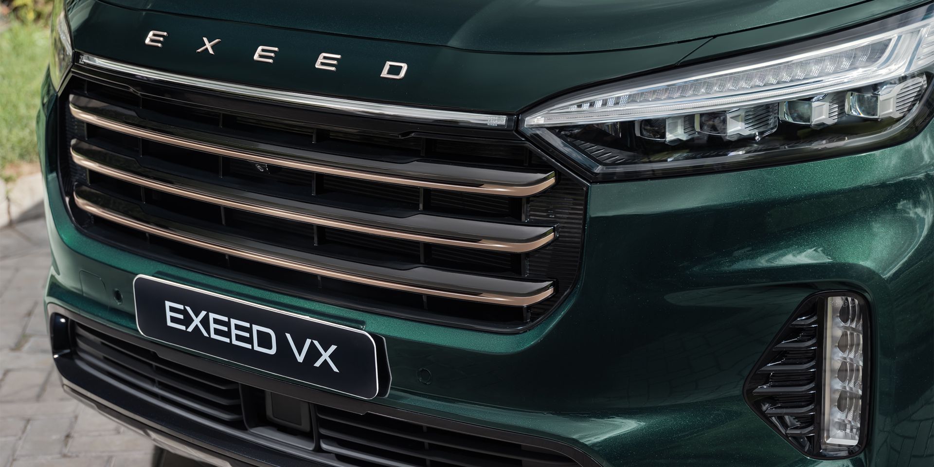 EXEED объявляет о выходе на рынок специальной серии внедорожника EXEED VX. Новая комплектация флагмана бренда носит название President Limited Edition и отличается дизайнерскими решениями в экстерьере и интерьере. Автомобиль получил новый эксклюзивный оттенок кузова – глубокий зеленый «Эмеральд», и уникальный пакет отделки экстерьера, включающий в себя лого EXEED в бронзовом цвете, декоративную накладку на бампер сзади и особый дизайн решетки радиатора с акцентными вставками.